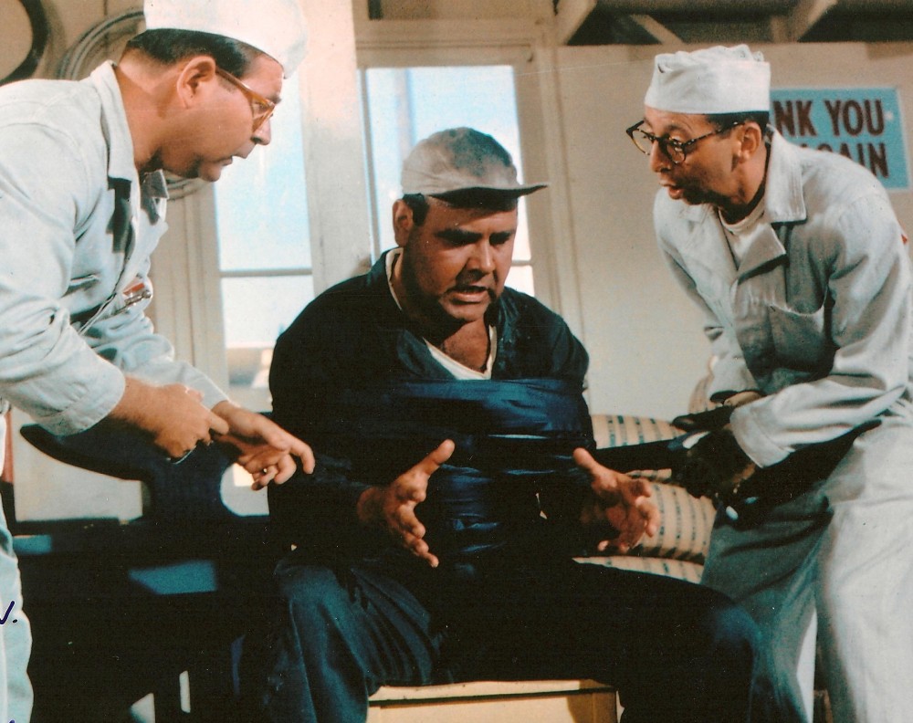 Many of the actors performed some of their own stunts, including some spectacular falls by Caesar, physical antics including the famous garage scene by Jonathan Winters, and Phil Silvers' drive into a flowing river where he almost drowned. Caesar severely injured his back while filming the hardware store scene and was unable to return to the film for some time. Silvers injured himself shortly before the shooting of the scene (near the end of the movie) where the male characters chase Culpepper up several flights of stairs and onto fire-escape ladders. As shot, the scene features Silvers' stunt double.